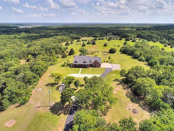 Peace and privacy are all yours on this secluded, wooded 20 acre (mol) residence. Commercial security gate and a long and winding road lead you to this meticulously maintained home. The large family room with cathedral ceilings and wood burning fireplace is just off the updated kitchen with travertine floors, stainless appliances plus granite and custom cabinetry. The floor plan is ideal with 3 beds down each with bath access and the 4th bed and bath are up. The game room upstairs is very spacious and has a great snack bar area. An integrated 10 person storm shelter is one of a kind and valued at $60,000. Updates include: hail resistant roof, fresh paint, new gutters, garage doors, carpet, heat and air units and hot water tank.