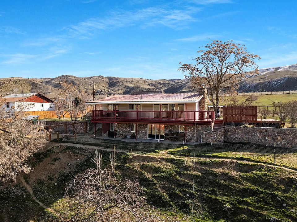 Welcome to Sweet, Idaho! This scenic, tranquil setting in the Idaho foothills is only 30 minutes from Boise. Located on the edge of Gem County, the parcel is six acres of fenced, irrigated ag land. There are three structures on the property: the primary residence, which features lots of windows, two fireplaces, and a wraparound patio deck; the accessory dwelling unit, a cute little cottage currently generating income as an Airbnb; and the classic red barn, which was recently constructed in 2022. The property also includes fruits trees, garden boxes, and a hot tub. If you’re seeking the peace and simplicity of ag living, but enjoy proximity to the thriving Boise metro, then this place is for you.