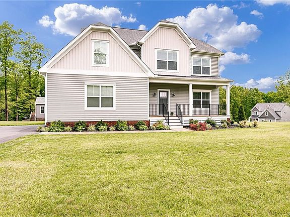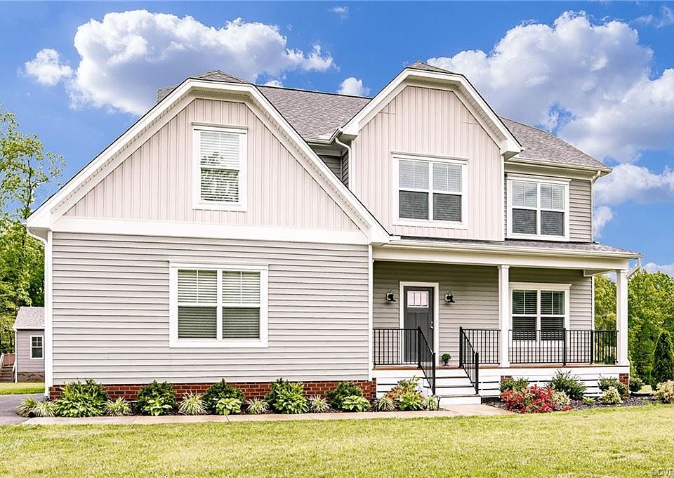 Remarkable custom-built Craftsman home only 2 yrs old w/ inviting front porch for relaxing plus rear deck overlooking the concrete patio. The bright & cheery kitchen has a breakfast bar and large eating area w/ triple windows which opens to the rear deck & yard. The spacious kitchen features white cabinets, granite countertops w/ backsplash, island w/ storage & electrical outlet, & a huge walk-in pantry! Stainless appliances w/ gas cooking & built-in microwave. Enter into the formal dining area to sit under the chandelier & overlook the cozy living room in which to enjoy the gas fireplace. Gorgeous dark hardwood floors throughout the entire first floor! Master suite has cozy sitting alcove & enormous walk-in closet w/ custom shelving. Immerse yourself in the master bath w/ jetted tub, elegant double vanity, & generous shower w/ seating. Large double door laundry closet. Wonderful mudroom w/ built-in seating & cubbies lead to the oversized 2 car garage / pedestrian door, perfect for the active household. Enjoy the community amenities including clubhouse, pool, & great walking areas. Don't miss this wonderful home!