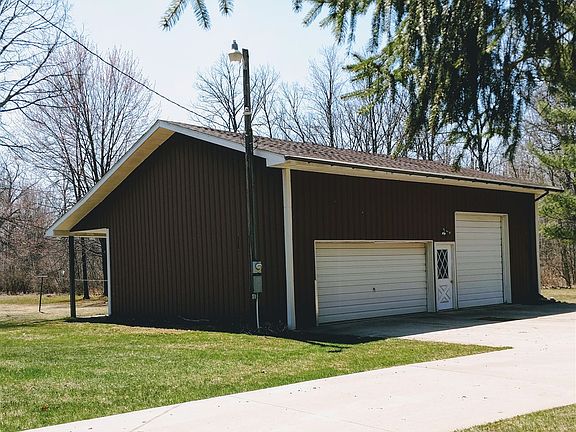 Enjoy the peace and quiet on 5 beautifully wooded acres. Another bonus is that the property is across from Saginaw/Gratiot State Game Area. 30 x 40 Pole Barn w/loft and 10 ft overhang. Home features newer Anderson double pane windows. Roof is only 2 years old. 4 bedrooms, 1 1/2 baths. Cozy log home feel in the family room. All appliances stay and an American Home Shield Home Warranty included for buyer. Schools can be Ashley or Merrill