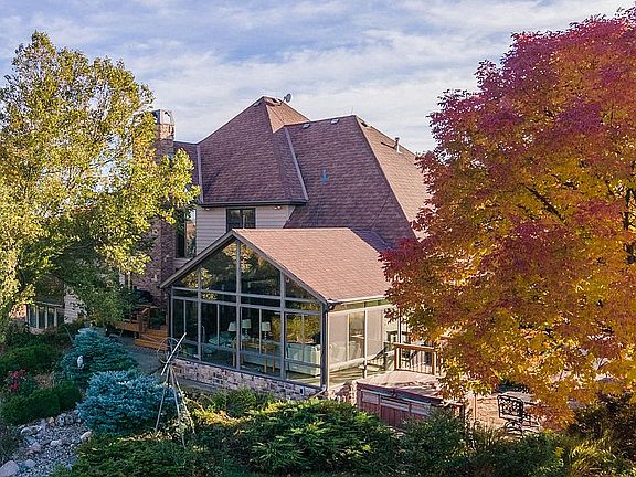 Once in a lifetime in-town, acreage oasis on a 19.9 acre lot! This gorgeous & immaculate 4 bed/ 5 bath home w/over 6000 finished sq ft. is move-in ready. Inside there is an impressive 3 story entry & great room w/a floor to ceiling custom fireplace.The kitchen is grand & features an oversized peninsula, high end appliances & granite countertops. The formal dining is impressive in size & views. The main floor master has a bath w/jetted tub, walk-in closet & a sitting area w/built-ins & panoramic windows.The main floor office has built-ins & french doors & there is also a 20 x 20 four seasons room. Upstairs has 3 bedrooms, one w/ its own bath & the other 2 share a Jack & Jill bath. The walk-out basement has an entertainment area & a full bathroom, a kitchenette and a solarium/greenhouse. The home has an attached 3 stall garage as well as a detached outbuilding!Outdoors you will find a fully stocked one acre pond, 8 ft fenced garden area, fruit orchard, professional landscaping & more!