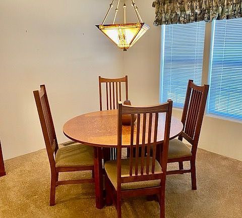 This lovely Palm Harbor 2006 manufactured home has 2 bedrooms, a den or office, and 2 full baths with a nice modern feel to it.. Located in the Hi Ho Park in Kernville, 1,344 sq ft makes this a spacious home. Dining room, laundry room includes washer and dryer. Nice sized kitchen has lots of counter space with dishwasher, fridge, and propane oven. Vaulted ceilings, air conditioning, 2 car carport, storage shed, and quaint front deck. Primary bedroom has a walk-in closet, bath has soaking tub, separate shower, and dual sinks. Hall bath has tub/shower combo. Rent is currently $587 per month, plus water and trash. Electric and propane are metered and billed by Suburban and Edison. The Hi Ho park has a club house and swimming pool.