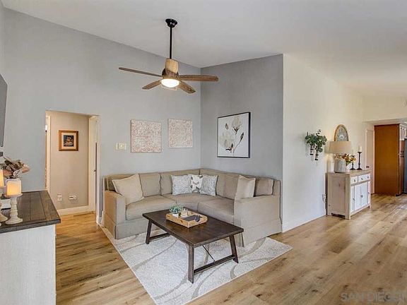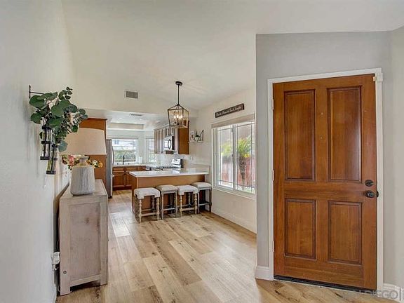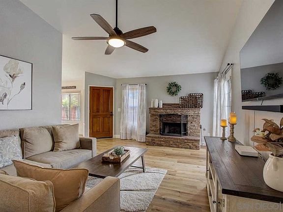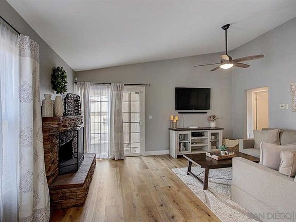 This beautiful single story home features 3 beds/2 full bath and situated on an oversized cul-de-sac lot with leased solar. Tastefully remodeled kitchen includes cabinets, Samsung stainless appliances, silestone countertops and laminate flooring all completed all within 2 years. Vaulted ceiling open up the living area and bedrooms with a cozy fireplace to keep you warm for those few chilly San Diego nights. Over 9,000sf of lot size there's room to play/build or swim. Low maintenance yard with new turf in the front keeps your hands clean on weekends. This home is hotter than the current market so don't delay, schedule your appointment before it's too late.