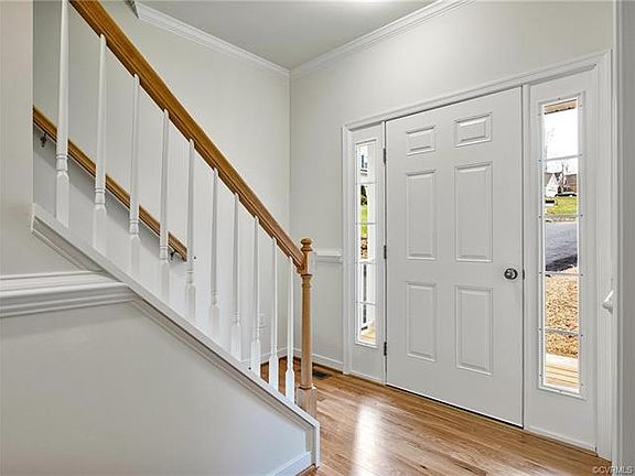 This home is finished and ready for new owners!! Sited on a .885 acre lot, the Virginia plan by Huguenot Builders Inc. welcomes you with a full front porch. The living room boasts a gas fireplace and there are hardwood floors throughout most of the first floor. The eat-in kitchen features custom cabinets, granite counters, stainless steel appliances and plenty of storage space in the pantry. The sliding door in the kitchen provides direct access to the 12x12 deck. Upstairs, the owner's suite is complete with a walk-in closet and en suite. Three additional bedrooms and hall bath complete the second floor. This home also has an unfinished basement plumbed for a full bath that has access to the back yard as well windows. Walnut Grove is conveniently located near shopping, restaurants, entertainment and major thoroughfares.