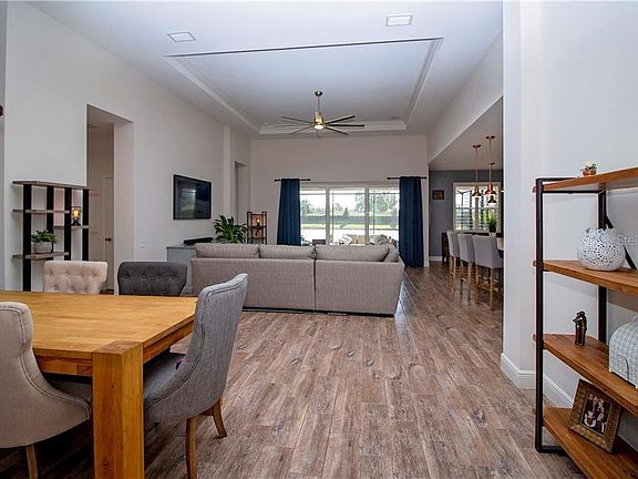 - Interior Features: Ceiling Fans(s), Eating Space In Kitchen, High Ceiling(s), Master Bedroom Downstairs, Open Floorplan, Split Bedroom, Walk-In Closet(s), Crown Molding, Solid Wood Cabinets, Thermostat, Kitchen/Family Room Combo, Living Room/Dining Room Combo, Solid Surface Counters, Tray Ceiling(s)