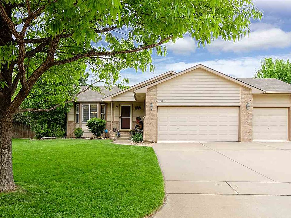 Where to begin with this meticulously cared for FORMER MODEL home in the MAIZE SCHOOL DISTRICT... As soon as you pull up to your new home, you'll appreciate the lush lawn and mature trees. Once inside you'll love the HARDWOOD FLOORS, vaulted ceilings and updated light fixtures. Large living room offers a bay window and gas fireplace (with remote). The dining area also has a bay window. Kitchen offers a near new Bosch dishwasher, pull-out drawers in your cabinets, and an oversized sink. There are three bedrooms - with carpet less than two years old and so cushy you'll want to kick your shoes off - and two bathrooms on the main level. The master bath has been updated with a granite vanity top and glass shower door. Head on down to the basement to a large family room with daylight windows... just perfect for that theatre room you've been dreaming about. You'll also find bedrooms four and five, and bathroom number three! Backyard (your new OASIS) features a large deck - partially covered by a pergola, a concrete patio with firepit, and landscaping with your utmost privacy in mind. Not only does this home offer a THREE CAR INSULATED GARAGE, you'll find an irrigation well and sprinklers too! And NO SPECIALS!!