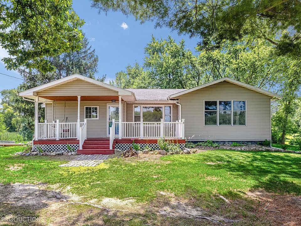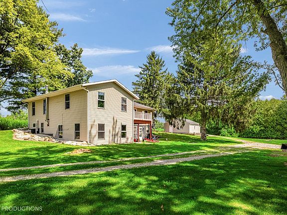 Welcome to this peaceful ranch home located on 6.9 acres. This 4 BR 2.5 Bath 2 car garage home is ready for you. The large backyard has an aboveground 24 foot in diameter swimming pool w/storage shed, two out buildings, 4 fruit trees and a trail through 4.5 acres of woods. This scenic and wildlife rich property has plenty of space to enjoy. Enjoy the country kitchen, hardwood floors, spacious dining and living rooms. The daylight walkout basement totaling 1,547 square feet features a Great Room with wood burning stove and a kitchen making it a possible related living space. Master Bedroom has its own balcony and updated bathroom. The additional 2 spacious bedrooms are separated by a full bathroom. Schedule your tour today!