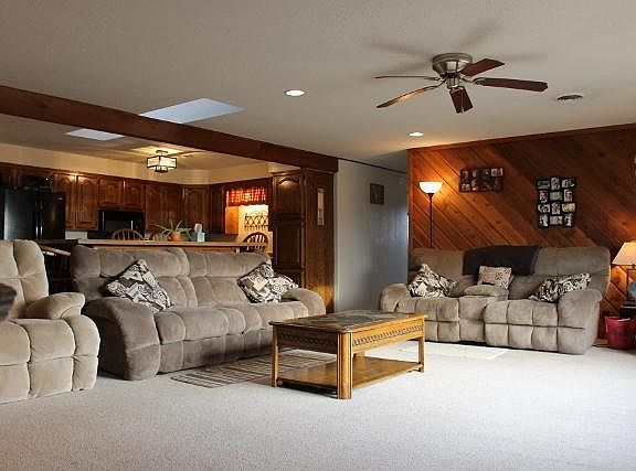 Beautiful drive leading to Home overlooking nice mostly open pasture ground. Nice fence, 30x40 Haybarn, 24x38 shop/garage & Earth Berm home. Well kept 4 bedroom/2 bath home w/ 2 entry's. Open Living/Dining & Kitchen w/ large Anderson window in Living to view the property and allow natural light in home. Skylight in Kitchen and roomy breakfast bar. Home has outdoor wood furnace that heats the water w/propane back up. Nice spacious patio area w/ fire pit for all your family get together's! This is a nice place and most in view. Just minutes off the 4 lane yet very private!