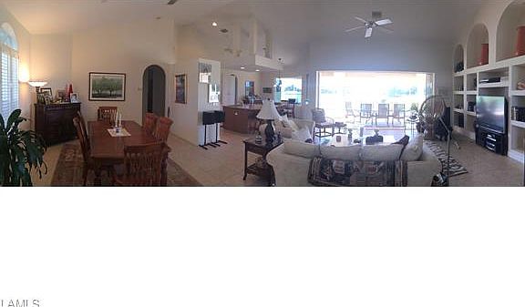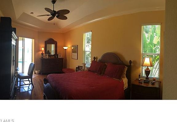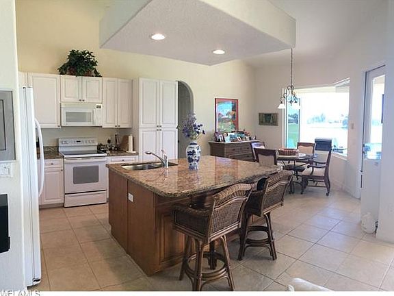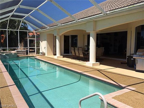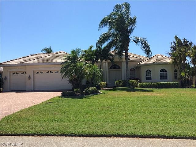 Golfing Lifestyle at it's Best! Custom built home in gated luxury Cape Royal Tee community. Enjoy the beautiful sunset expansive views over the 27 hole golf course and lakes. Open lifestyle living in this perfectly sized 2829 sq. ft. 4 bed. 2.5 bath home. Modern open floor plan, ideal for casual entertaining and taking in the panoramic views. The home features vaulted and coffered ceilings, built in shelving, granite counters, custom wood island, tile and hardwood floors. Private master suite through double doors with private lanai access, huge walk in closet, custom mural and master bath retreat with Jacuzzi tub, open air shower and his/her vanities. There are 2 other well appointed large guest rooms, as well as a exceptionally large media/family room. Media room equipment negotiable. Outdoor boasts a salt water heated lap pool with spa, surrounded by river rock lanai surfacing. Cape Royal has low HOA fees and benefits form lower county taxes as the community is on Pine Island public water.