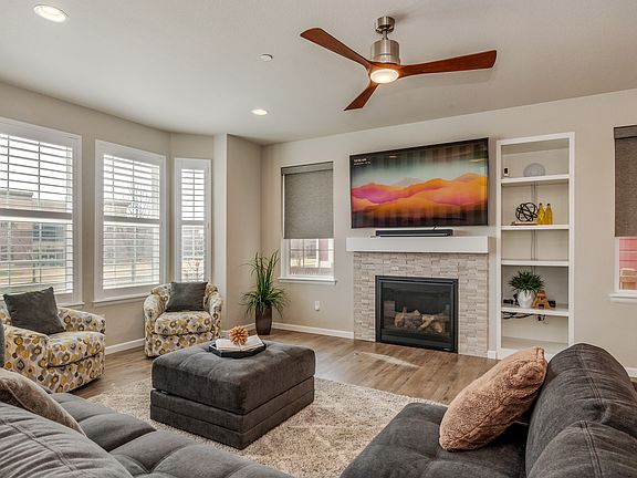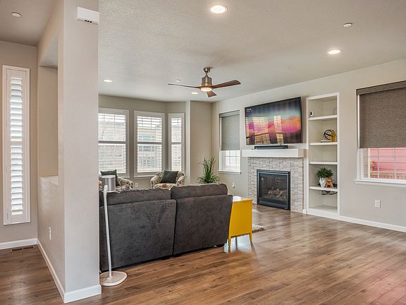 Pottery Barn Perfect!! Stunning home in Bradburn East will not disappoint. 4 bedroom 2.5 bath home offers an amazing open floor plan, great natural light, & beautiful wood floors. Home boasts a beautiful high-end upgraded kitchen complete w/ granite counters, huge island, high-end SS appliances & custom tile backsplash. There a wonderful dining area just off the kitchen w/ access to the stamped concrete patio making this a great space for entertaining. Family room has an abundance of natural light & a wonderful gas fireplace. Main level you will find a half bath as well as laundry room. Upstairs you will find all 4 bedrooms and 2 bathrooms complete with custom tile work and granite counters. Upstairs you will also find a huge theater room perfect for family movie nights. This home also offers custom light fixtures throughout, motorized blinds, plantation shutters, whole house fan. Amazing location close to The Academy of Charter Schools, shopping, restaurants, parks & transportation.