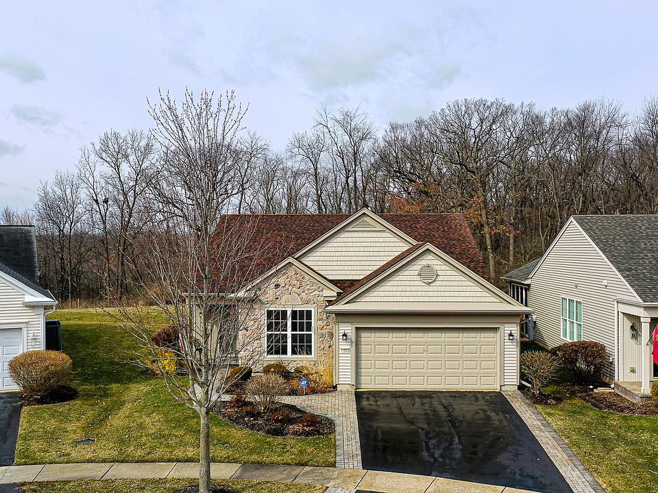 STUNNING AND IMMACULATE BROOKFIELD MODEL BACKING TO WOODED AREA~FEATURES CUSTOM STONE ELEVATION, PAVER RIBBONS, SIDEWALK AND FRONT PORCH~13 X 24 CUSTOM THREE SEASONS ROOM WITH VAULTED CEILING AND BRICK PAVER FLOOR~CROWN MOLDING~FIREPLACE~HARDWOOD FLOORING~KITCHEN WITH LARGE ISLAND, GRANITE TRANSFORMATION COUNTERTOPS, CAN LIGHTING, 36" CABINETS WITH PULL-OUTS & OVER/UNDER CABINET LIGHTING, NEW SINK AND DISPOSAL~NEW REFRIGERATOR & STOVE~MASTER SUITE WITH BAY, RAISED DOUBLE VANITY, GARDEN TUB, CERAMIC SHOWER AND FLOOR AND WALK-IN CLOSET~CEILING FANS~CROWN MOLDING~EXTRA STORAGE CLOSET~GARAGE HAS NEW GARAGE DOOR, EPOXY FLOORS, AND STORAGE RACKS~LAWN IRRIGATION SYSTEM~INVISIBLE FENCE~NEWER ROOF~HOMEOWNER IS EXEMPT FOR REAL ESTATE TAXES~COME AND JOIN THE FUN IN SUN CITY'S ACTIVE ADULT 55 AND OVER RESORTLIKE COMMUNITY WILL ALL OF IT'S AMENITIES~2 OUTDOOR POOLS, 1 INDOOR POOL, 2 EXERCISE FACILITIES, WALKING & BIKING TRAILS~INDOOR WALKING TRACK~PICKLEBALL, TENNIS & BOCCE COURTS~PLUS SO MUCH MORE!