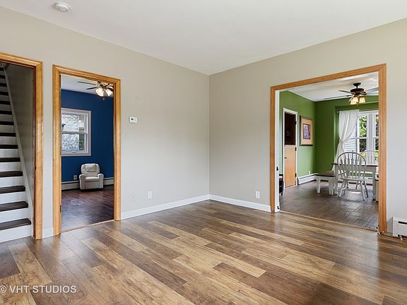 All the work has been done for you! Impressive 3 bedroom 2 bath historic home, known locally as 'Doc's house', is centrally located in the charming town of Hebron. Contractor owned and updated in the living areas and behind the walls. Filled with natural light and freshly painted inside and out, this classic home has updated hardwood and tile floors throughout. Two nicely-sized bedrooms upstairs, and the option for a first floor master suite. Separate dining area with built in china cabinet is adjacent to the expansive living space. The kitchen offers plenty of storage and counter space, plus many new stainless steel appliances. All of the plumbing inside the house has been updated, as well as all first floor electrical. The laundry room has been conveniently relocated upstairs and includes large capacity washer and dryer. The bathrooms have been increased to include two full, updated baths. The new fence and patio create a private sanctuary in the large backyard. Listing includes separate PIN for garage and shared driveway. The detached two car garage is heated and equipped with electrical. All of this and so much more! A must see!