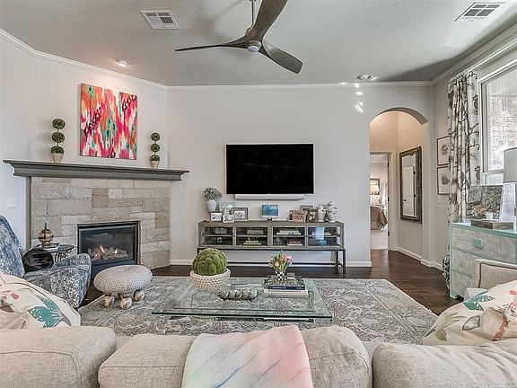 Welcome to this quaint villa in Glenhurst! Situated at the end of a cul-de-sac, this charming home offers an irresistible blend of comfort & elegance with an abundance of natural light throughout. An inviting entry + an airy open floor plan that seamlessly connects your every day living spaces. With 2 bedrooms plus study/bedroom & 2 full bathrooms, there's plenty of room for everyone to spread out & relax. A spacious primary suite has 2 closets, double sinks & curbless walk-in shower. Amenities highlights are: Stone fireplace, Great Wall space for furniture placement, beautiful wood flooring & pristine white woodwork which create a warm & inviting atmosphere throughout. The kitchen is a chef's paradise, boasting granite countertops, a walk-in pantry, stainless steel appliances, large island with seated space + a convenient gas cooktop. This home has been meticulously maintained & updated with high-quality pad/carpet, stylish light fixtures, & fresh interior paint, ensuring it's move-in ready for you to start creating lasting memories. The spacious laundry room is equipped with a sink, ample counter space, & storage cabinets, making chores a breeze. The covered patio offers a serene spot to enjoy your morning coffee or entertain guests in the perfect east facing backyard backyard. Storage is plentiful with a staircase in the garage leading to the attic, providing ample space for all your belongings. Your peace of mind is ensured with a built in storm shelter, built-in security system system, while the HOA takes care of complete lawn maintenance & provides gated entry for added security. Complete irrigation. Don't miss out on the opportunity to make this your forever home – schedule a showing today!