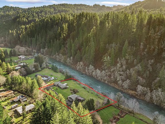 RARE AND MAJESTIC approx. 450 feet of clear water Alsea River frontage that has superb fishing spots and summer swimming holes. Manufactured home completely renovated around 2009. Main home has 3+ bedrooms, and 2 baths w/heated floors. Attached 2 car garage, Swim Spa and river view office. Detached garage/work shop has 2 bedroom/1 bath guest house with kitchenette and laundry. 3 bay carport and kennel area. Plenty of boat or RV parking! Stroll the 2.31 acres of lush lawn w/ shed, green house, gardens, berry patches, and mature landscaping. Relax in the sunroom that stays cozy from the pellet stove. 'Grandpa's kitchen' is ready for entertaining with the pizza oven, grill, & pancake griddle. Murphy bed in 3rd guest bedroom. Den/office could be 4th bed. Truly a special spot!