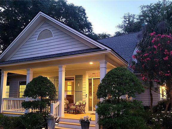 Location! Location! Location! - Historic Old Demere Road on the south end of the Island. Close to all SSI has to offer. East Beach & Village is a short bike ride away. Walk to Southern Soul, Winn Dixie, CVS and Redfern Village. This is a Custom Built and well-maintained low country home. There is an inviting front porch 24' x 8' with huge, detailed posts, tall peaks and wide overhangs to protect you from the Georgia rain. Home has pretty custom, white-washed blue pineapple cutout shutters and 80' custom white scalloped fence. The only "double lot" (100' x 134') before Bloody Marsh. There is plenty of room for a pool. French doors open to additional outdoor seating on the side deck off the dining room. A trellis and porch swing are so much fun to enjoy a latte or cocktail. Local landscape artist, Mark Brewer, designed the grounds with mature oaks, crepe myrtles, azaleas, 7 palm trees, boxwoods, red maples inground sprinklers & irrigation well. Up lighting lights up the home at night. Home has a split bedroom floor plan. Home is spacious and very bright as there are many windows allowing for tons of sunlight throughout. The home boasts of 9' ceilings & crown molding throughout. There is a vaulted ceiling is in the huge 22'x18' living room. The living room abounds with natural light, a beautiful "wood burning" tabby fireplace & tabby hearth with custom built-in cabinets on either side. Kitchen is located off the living room. It is all open and lovely. Laundry room is on the main level with pedestal washer/ dryer and sink with cabinets above. Attached 2 car garage is 21'x 21' with tons of storage and a walk-in attic. The master bedroom is 12'x15' with an En Suite bathroom that has a 5-foot jacuzzi jetted tub, walk-in closet, linen closet and 3 pocket sliding doors. All of the 3 bedrooms are downstairs on one level - 2 bedrooms are 11'x14'. The master bedroom is 12x15. All of the bedrooms have a view of the grounds. Upstairs you will find a huge 30' x19' bonus room /den that is spacious enough to hold a pool table and living area. A "cedar" built-in bench is along one entire wall with storage and a closet. There is also a room (19'x10') off the bonus room. It is currently being utilized as a 4th bedroom. It does not have a closet but it would be very easy to add one. There is actually walk-in attic space that could be converted into a closet. This room could also be used as an office, gym, studio, etc. Many possibilities! Out back there is a large shed with a blue metal roof. Easy to access from rear garage door. This home is a well-designed, comfortably flowing home that allows guests to enjoy each other's company or retreat to the huge 30' x19' upstairs private Den to shoot a game of pool. **Located in an X Flood Zone which means no flood insurance is required by most lenders. NO HOA. Excellent FLETC & Vacation Rental. Easy to show. Call for showing today. Won't last long! **Some furnishings negotiable.
