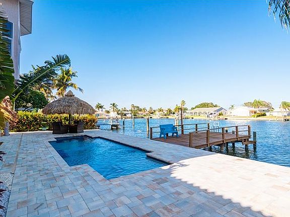 This Waterfront Home Has it All! (See virtual tour) Completely updated 2-story, 3 bedroom, 2.5 bath waterfront home on the captivating Isle of Capri. Property features a wide open space, an oversized kitchen that includes 2 sinks, stainless steel appliances, cooktop and a built-in breakfast table. Brand new Pool installed in 2017, which includes a conversation pit with jets, built-in table, and color changing LED lights. The perfect entertaining area! From your dock, it is a very short sail to the Gulf of Mexico through John's Pass. Seawall was replaced in 2016. Tile roof replaced in 2012. A/C replaced in 2016. The 500 square foot bonus room on 2nd level includes ½ bath, high ceiling and picture window. Perfect space for a luxurious master suite, office or entertainment room. Home includes many extras such as a water treatment system, updated windows, new water heater, hurricane reinforced garage door. This is an Outstanding Value on Treasure Island! Hurry before it's Gone!