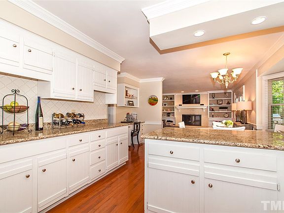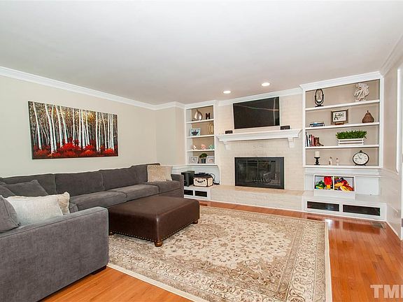 Lovely 4 bdrm updated home on private wooded .92-acre lot. Gleaming hdwd flrs; roof 2011, new carpet in BR's, new hdwds in mstr & 2nd flr hallway, SS appl's incl smooth top stove w/double oven, tile back splash, remodeled MBa, exterior doors & paint, A/C units, storage shed & stained deck. Formal rms, fabulous kit w/granite counters & refrig included. Fam rm has wood burning masonry frpl, built-ins & french door to deck. 2 car carport. Enjoy comm pool & tennis. Convenient to Falls Lake recreation area