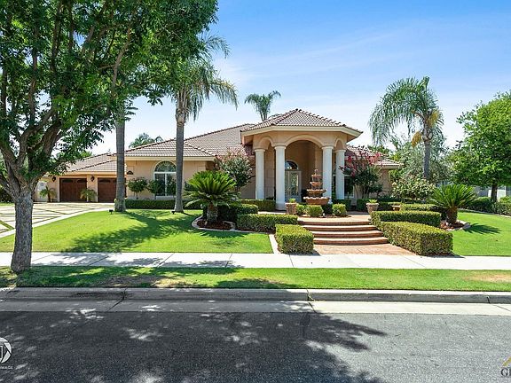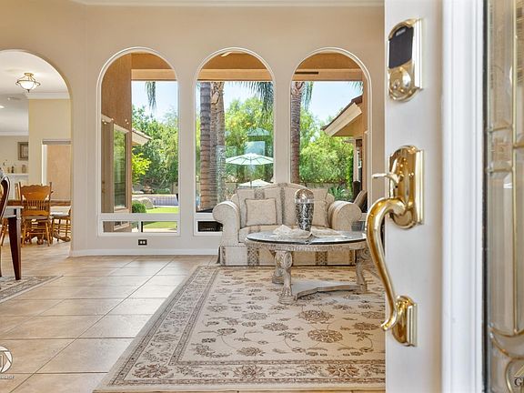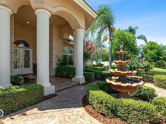 Grand island at Seven Oaks! Froehlich-built Grand Caymen split-wing. Five bedrooms and three full bathrooms. Gorgeous boulder waterfall & pool, spa, BBQ pavilion gazebo. Fabulous backyard with huge palms. Granite kitchen. Luxurious master bedroom with fireplace. New garage doors. Elegant custom silk window treatments throughout, spacious formal living and dining and a big family room! Granite island kitchen.