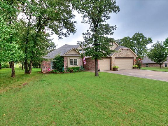 No detail is too small! This one-owner, over half an acre, 3 bedroom plus study home has a large storm shelter outside and gives you the tranquility of the country with the convenience of Edmond just a few minutes away! Not only is this home in the amazing Edmond Schools, but offers upgrades such as real hard wood floors, and carpet that is less than a year old! This home features granite, a three car garage, stainless steel appliances, a separate laundry room, an outdoor fireplace, and mature trees! This home is even equipped with a water softening system, and a top of the line Rain Guard Smart sprinkler system (it won't come on under 32 degrees as well as if it has rained, it will not come on! What a lifesaver!) Don't forget the water filtration system that has reverse osmosis! WHOA! The neighborhood offers a nice playground for your little ones to play while your teenagers play on the basketball court. Schedule a showing before this gem is gone!
