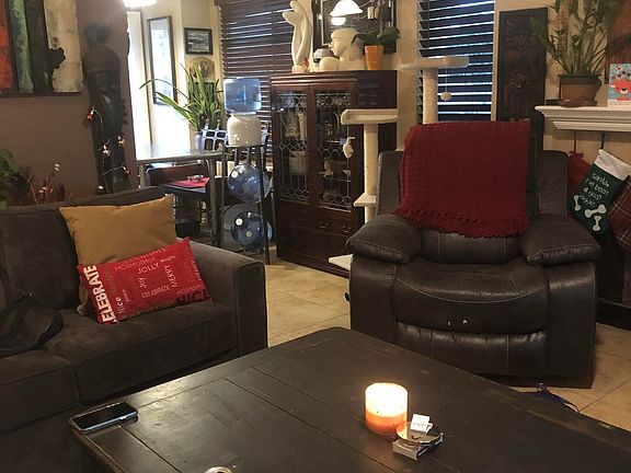 Turn the key and enter this beautiful, comfortable 3 bedroom, 2 bath home ready for its new owner. Lovely tile floors for easy upkeep. Kitchen and baths have granite counters. Master bath has a super large shower, tiled walls. This home has many beautiful appointments - too many to mention. Ceiling fans throughout. The kitchen and great room flow nicely for entertaining, and there is a fireplace for cool weather comfort. There is a door direct from the garage to the home for convenience and safety. The backyard is beautiful and easy care with artificial grass. There is a patio off the kitchen slider. Backyard is surrounded by a block fence. There are lots of cabinets in garage for extra storage. Windows and sliders are dual pane. Roof and AC are about 6 yrs new.