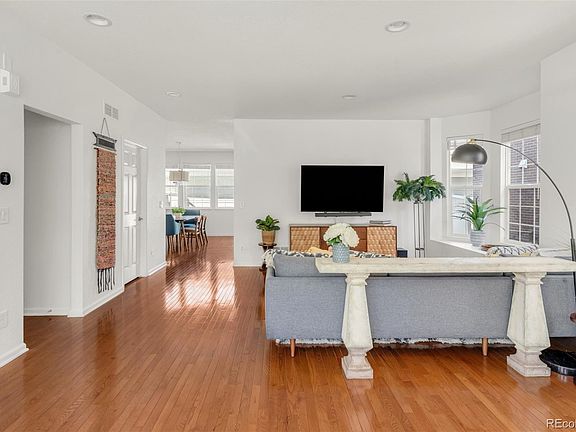 Natural light beams throughout this beautiful Bradburn townhome. Tucked in a coveted end unit placement, this residence offers seamless access to Bradburn shopping, restaurants, parks and trails. Hardwood flooring flows underfoot throughout the main level complemented by freshly painted walls and doors. Large windows draw abundant brightness into a spacious living area. A gas fireplace adds warmth and ambiance to a cozy dining area. The kitchen showcases sleek stainless steel appliances including a new refrigerator and microwave. Three sizable bedrooms await on the upper level including a sun-filled primary suite boasting a five-piece bathroom and an expansive closet with ample storage space. An unfinished basement offers endless potential for additional living space or storage. Outside, a private patio area provides plenty of space for enjoying outdoor relaxation. Additional upgrades include plush new carpeting. Enjoy the convenience of a detached two-car garage with epoxy flooring. An incredible location for a low-maintenance lifestyle w/ easy access to yoga, the community pool, tennis courts + commuting seamlessly to boulder or denver. Lender incentives available through Preferred lender, Artisan Home Loans.