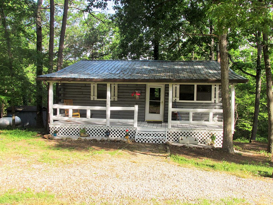 Escape the normal day to day life with this spacious 2 bedroom home set off the beaten path in a gated lake community. Home offers an inviting covered front porch, vaulted ceiling living room with fireplace for pure enjoyment. 2 nice sized bedrooms, "L" shaped kitchen, full main floor bath, full unfinished walk out basement with bath rough-in. Newer metal roof and updated septic installed in 2010. Home sits a little over a few blocks from one of the 2 community 100+/- acre lakes, backs to woods and is not far from the pool either!