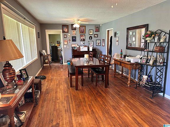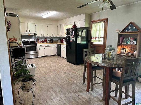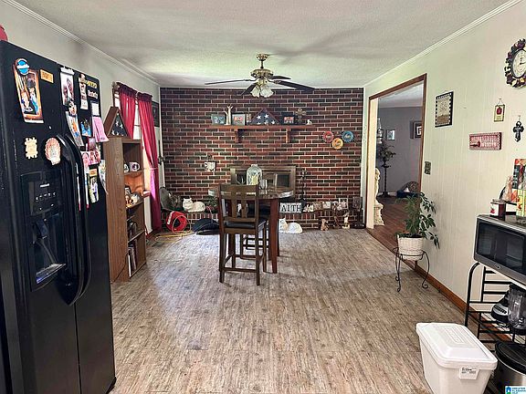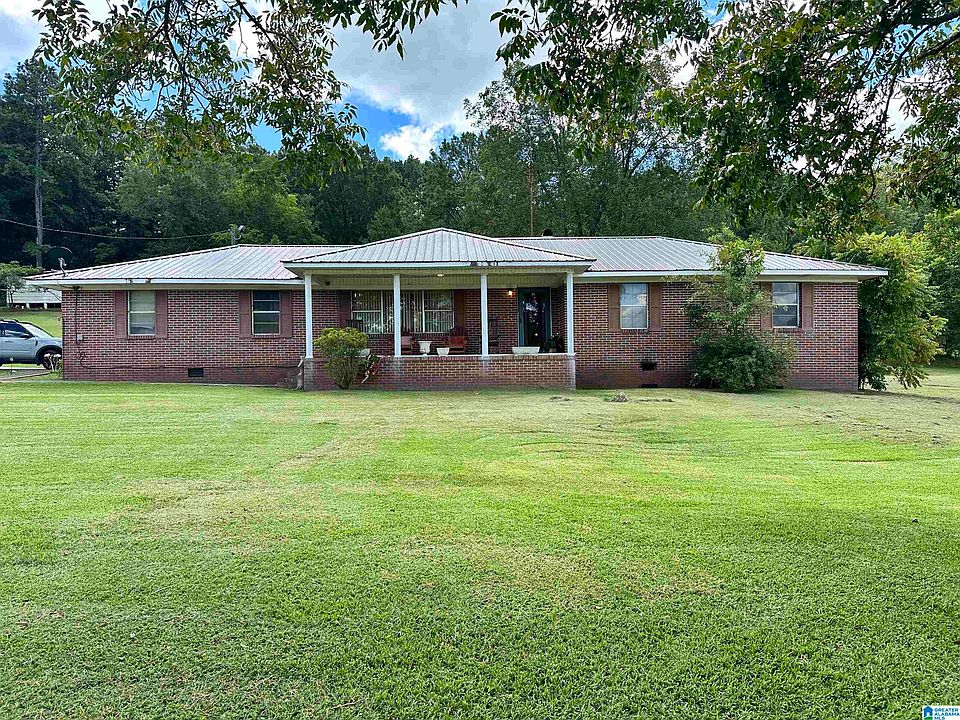 Cute one level brick home with a metal roof, 1,500 sq ft on 2.3 acres of land in Ragland. Home features a beautiful floor to ceiling fireplace in the kitchen eat-in area; hardwood floors throughout the living room, dining room and bedrooms with laminate wood flooring in the kitchen. There is an above ground swimming pool with a deck that will stay. HVAC was just purchased November of 2022. Home needs a little TLC, but has so much potential!