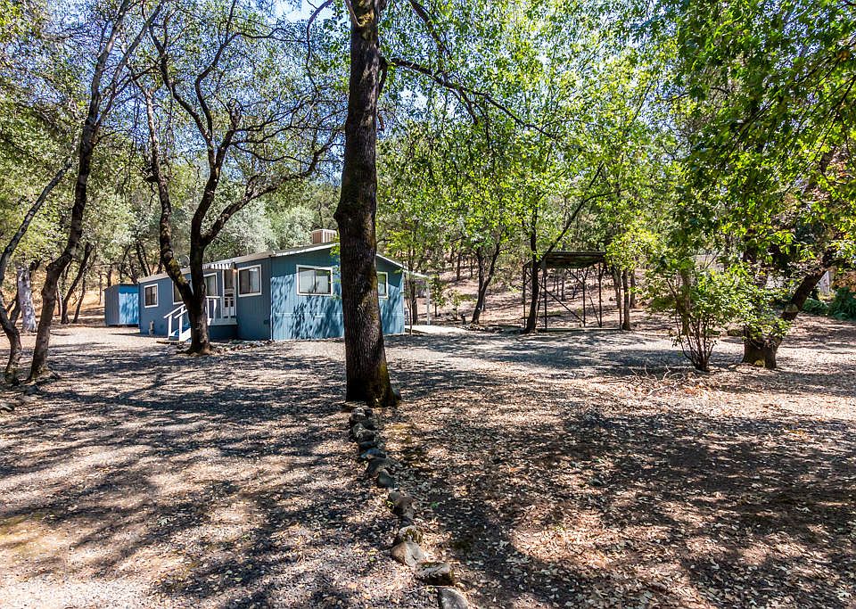 Great affordable home tucked away on nearly an acre surrounded by beautiful oak trees. This clean 2 bedroom 2 bath home offers a great floor plan, covered parking, and several outbuildings. The setting is amazing and is perfect for low maintenance living just minutes from the lake, shopping, and great schools.