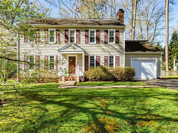 Welcome home to this 4-bedroom, 2.5-bathroom beauty in sought-after Chesterfield County. Before you enter the house, you'll notice a one car attached garage. Around back you'll find a screened-porch and a sizable deck. The porch has been painted and the deck has been replaced within the last two years. The roof is around 10 years old, and the house is wrapped in low maintenance vinyl siding. As you walk in, the living room and dining room are to your left, both complete with hardwood flooring and crown molding. The dining room features chair rail molding. Straight ahead is the kitchen and to your right is the family room, both complete with LVT flooring. The kitchen comes with a stainless-steel fridge and dishwasher, tile backsplash and dine-in area with a large window overlooking the porch and backyard. The cozy, formal family room has a brick, wood-burning fireplace and recessed lighting. Upstairs is four carpeted bedrooms, one being a primary with an updated ensuite bathroom and walk-in closet. The hall bathroom is also updated. All of the bedrooms feature ceiling fans. There is a doorway in one of the bedrooms with stairs to the unfinished attic: storage that stretches the full length of the house. Washer and dryer hookups are in the half bath located on the first floor.