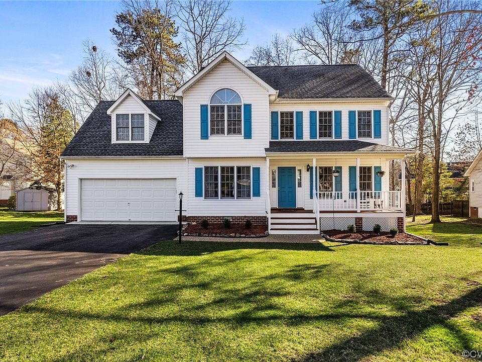 Simply gorgeous 4 BR colonial with 2 car garage in the sought after neighborhood of St James Woods off Lucks Lane. From the 20' long covered front porch enter onto gleaming hardwood floors that run throughout the living room, dining room and family room. The beautiful eat-in kitchen boasts ceramic tile floors, granite counters, gas cooking and new appliances (2023). A warm family room includes gas fireplace, ceiling fan and access to the rear deck. A large master suite upstairs has just had new carpet installed and includes a luxury master bath with double vanity, jetted tub and separate shower. Also included is a large walk-in closet. There are three additional bedrooms upstairs (two with new carpet) and they share a hall bath. Out back is found a 12' x 14' freshly stained deck that overlooks a meticulously cared for yard. There is an 8' x 14' shed (2022) that has electricity which assists with your storage needs. The beautiful yard is covered by a 6 zone irrigation system. Both HVAC systems were replaced in 2021. All appliances convey. Freshly painted inside and out, this one is sure to grab your attention. Don't hesitate ... book your appointment today!