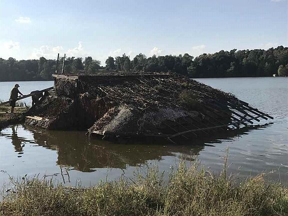 Sportsman paradise, 66 acres with a 41-acre watershed lake with bass, crappie, and bluegill. In the fall and winter you can hunt deer, duck, and goose from this hunter's dream blind with an attached boat carport, kitchen, and heated mud room with open holes for shooting, just steps out the door is the boat launch. Just reworked this last summer owner has an electric line run from the bank to the blind to run generator to get electricity to the blind.