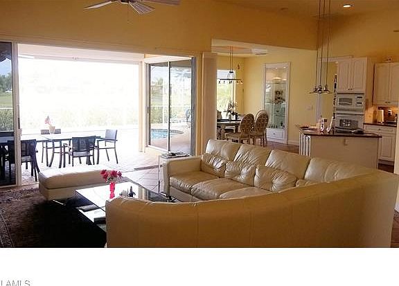 Are you looking for a great home in a quiet neighborhood? You have found it! This exquisitely, well maintained home offers 4 bedrooms, 2 baths plus den/study with spectacular golf course & lake views. Excellent features are 12' ceiling in living area and 10' in all others with coffered ceilings with recessed lighting, 8' doors, Terracotta tiles throughout the house, 2 zoned A/C systems, enormous paved lanai area with plenty of room for entertaining and an over sized heated pool with 5 fountains and a pool deck that expands over the full width of the house. The gourmet kitchen features granite counter tops, huge island, wall oven, Bosch Dishwasher and a pantry. The 5-piece Master Bathroom includes over sized Jacuzzi tub, double sinks and bidet. Laundry has lower and upper cabinets, sink and Bosch washer and dryer. Built-ins in study, formal dining and living room, Intercom and alarm system, in-wall-pest-system and newly painted exterior are other features that you will appreciate. Treasured for its desirable western rear exposure providing all day sunshine on the pool and fantastic sunsets. SELLER IS VERY MOTIVATED - THIS HOME COMES WITH A HOME WARRANTY!