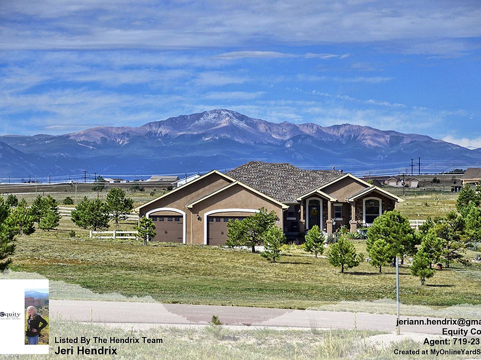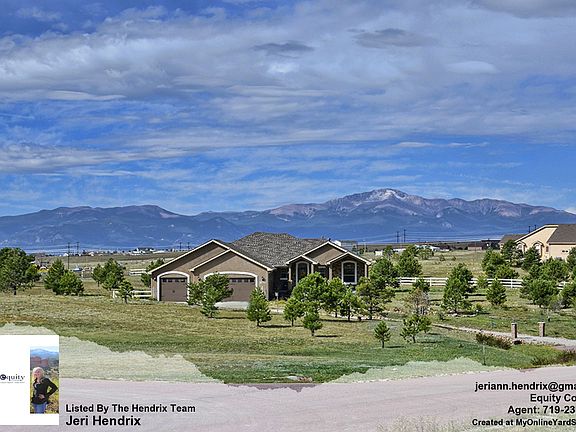 Stunning Custom Ranch Style Home Located On A Cul-de-sac Home With Unbelievable Pikes Peak Views. The Gorgeous Kitchen Offers Custom Knotty Beech,Staggered Cabinets (36 & 42),Granite Counter Tops/Eleven Foot Granite Breakfast Bar,Under Counter Lights,Hardwood Flooring & Large Pantry. The Great Room Boast; Tray Ceiling (10 & 11 Feet),Slate And Knotty Alder Gas Fireplace,Tall Windows W/View Of The Mountains & Black Forest,Carpet And Oak Hardwood & Wired For Sound System. Master Bedroom & Bath; Tray Ceiling/10 To,11 Ft.,Tiled Walk-in Shower,Garden Tub,7 Ft Double Sink Counter & Knotty Beech Cabinet,Heated Tile Floor W/Thermostat,Walk-in Closet With Custom Shelves & Racks,Closet Walks-into Laundry Room. Walkout Basement Includes; Family Rm W/Custom Built-in Shelves Across One Wall,Part Of Second Wall,Tall Windows W/View Of Mountains,Black Forest & Large Private 935 Sqft Walled Patio W/Wood Burning Fireplace. Entertain W/Full Wet Bar W/Tile Counters And Custom Oak Hardwood Bar Counter,Wine Fridge & Refrigerator,Staggered Hickory Cabinets And A Wine Cellar W/Wine Racks,Arched Walk Through To Wine/Beer Crafting Room W/Sink Where You Can Create Your Own Masterpiece. The Outdoors Amenities Include; Automatic Irrigation System,Native Flowers,Tan Vinyl Fence On South & West Sides,All Plants Are Native,Drought Tolerant,Berry Bushes,Vegetable Gardens,Apple Trees,No Pesticides,Herbicides,Chemical Fertilizers Used. Miscellaneous; Electric 200 Amp/Garage,100 Amp Sub Panel/Basement,50 Gallon Gas Hot Water Heater,50 Gallon Well Storage Tank,Weather Station,Cable,Satellite,Land Line/Dsl Available,Cat 5 & Coax/W Control Box,Wired To Great Room,Master Bedroom,Rec Room,Sunroom & 4th Bedroom. View This Exceptional Home Conveniently Located.
