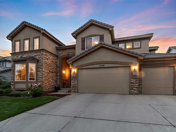 You will fall in love with this high end home in the gated Reserve at Cherry Creek Vista. As you enter the home, the elegant foyer leads you to a bright and open floor plan. The freshly painted formal living area with 20ft ceilings and a gorgeous fireplace. The home office/study offers privacy, and the formal dining room offers plenty of room for large gatherings. The chefs kitchen features by a large floor-plan, generous island, granite countertops, 42" cabinets, eat in space, wet bar/pantry. The kitchen leads to the family room also with 20 ft ceilings. The main floor also includes a mudroom, powder bath, laundry, and guest suite with 3/4 bath. Well planned dual access stairs to the upper floor can be accessed from either the foyer or the kitchen and has a mezzanine sitting area. The primary suite is a secluded oasis, with a fireplace and coffee bar leading into the impressive 5-piece bathroom and spacious walk in closet. Additionally the second level features 3 more large bedrooms, 2 with walk-in closets connected via shared bathroom bath. The unfinished basement offers unlimited potential for flex space, media room or gym. Additionally, the whole house has a pre-wired speaker system. Outside, the landscaping can be enjoyed from the private yard. The backyard has a built-in fireplace and a gate that leads you to a trail that goes all the way to the Cherry Creek State Park. The community amenities include a pool, clubhouse, and tennis courts. Situated near Cherry Creek state park with easy access to many hiking trails. Only 5 minutes from DTC, 15 minutes to downtown Denver, and 45 minutes to the gorgeous mountains and ski area. Some of the city’s finest restaurants and shops are within a 2 mile range! SEE VIDEO TOUR ATTACHED!