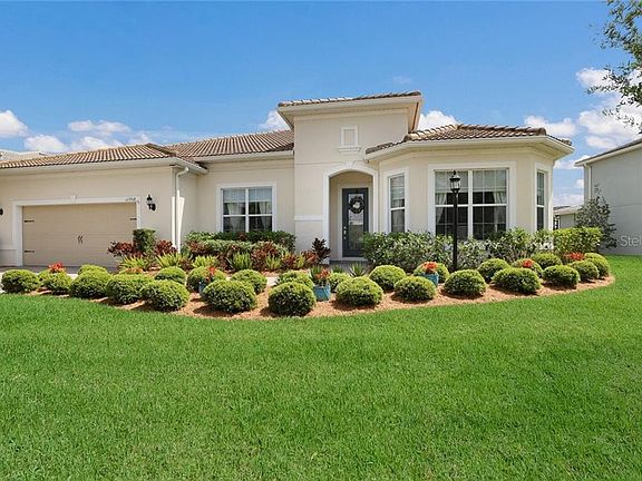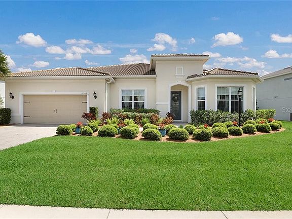Talk about a million dollar view! This exquisite residence is located on the largest homesite in Mallory Park AND has the most incredible 80 foot water view! Get ready to be "WOWED" with this move-in ready, one story home. This residence has been meticulously maintained and lovingly adorned with custom mill work throughout. The barn doors, beams in the dining room ceiling and paneled bonus room are not to be missed. The heated pool and spa are the perfect place to relax and unwind with a glass of wine and a good book. This open floor plan boasts high ceilings and generous room sizes. The kitchen has rich espresso cabinets, gorgeous quartz counter top, timeless marble backsplash and massive island for entertaining. Enjoy the formal dining room with pass through wetbar with wine refrigerator. For more casual dining, enjoy the eat-in-kitchen with custom bench seating with gorgeous lake views. The master suite also enjoys lake views, wood flooring and spa like master bathroom. Large walk-in shower, dual sinks, upgraded pendant lighting and large soaking tub will not disappoint in the luxurous master bath. No expense was spared in creating the most customized master closet that rivals a designer showroom. You will love the rich engineered wood floors in all three bedrooms, dining room and bonus room, which could easily convert to a large fourth bedroom, super size study or game room large enough for a pool table. The icing on the cake is the massive lanai area with covered space for dining and future outdoor kitchen, travertine deck, huge heated pool with sun shelf and spa! The panoramic, clearview screens make this view second to none! Mallory Park is conveniently located near award winning beaches, fabulous shopping, a pleather of fabulous dining options, local airports and interstate 75. This amenity rich gated community truly has it all with community clubhouse, pool, spa, state of the art fitness center, basketball/pickle ball courts, and playground. This one story Camelot floorplan is highly upgraded and move in ready! This is the home you have been dreaming of. Now is the time to make your dreams come true!