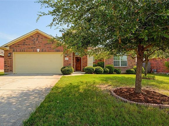 Charming one story with open floor plan. Formal dining could be used as office space. Large master suite, lots of closets & storage throughout. New paint in the home. Private yard with amazing limestone patio. Home backs to greenbelt for great privacy. Harris Branch rec center includes clubhouse, playground & pool.