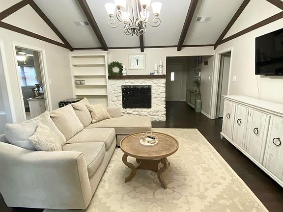 Great location and access to shopping, schools, and restaurants. One level 4 bed, 2 bath spacious layout with wood floors in living, dining, kitchen, hallway. Updated kitchen with quartz countertops, subway tile backsplash, and new appliances. Large laundry room. New interior/exterior paint and carpet in 2019. Double-tiered shaded deck looking over fully fenced back yard. Vaulted ceiling in living room with wood beams and painted rock fireplace. Side entry double garage. See Agent Remarks
