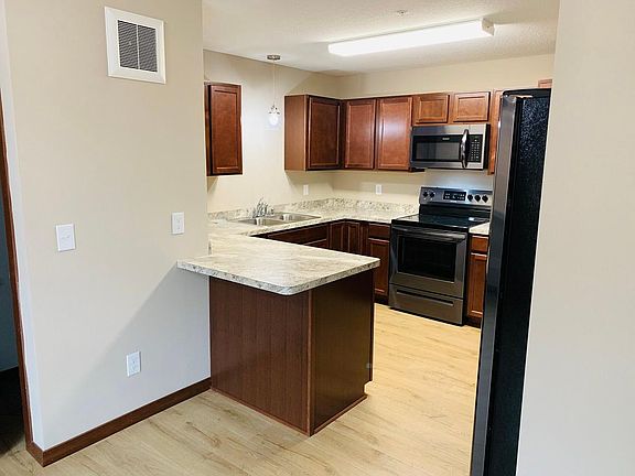 Address: 11909 191-1/2 Ave NW #4 Elk River. Two bedroom, 1 bathroom, ground level apartment for rent in recently built 8-plex building. Unit includes; upgraded stainless steel appliances, washer/dryer & a one stall garage. Located near shopping, dining, entertainment, schools & parks. One pet allowed per unit cat or dog w/max weight 40 pounds. NOT SECTION 8 Approved. Professionally Managed by Acuity Group Tenant pays electric (heat/ac), cable/internet/phone. One year lease term. $45.00 application fee for all tenants over 18.