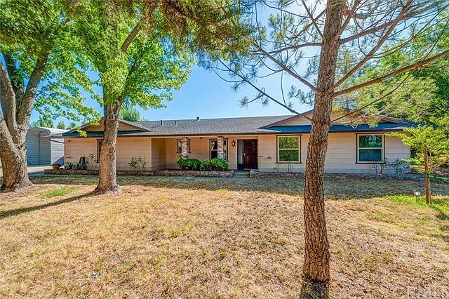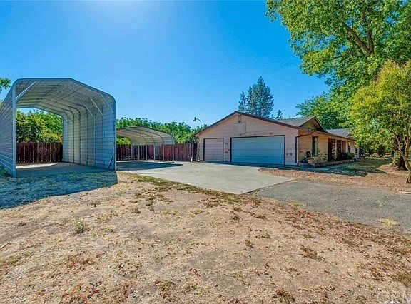 Move-in ready home on large 1.44 acre lot perfect for your toys and with plenty of room to roam. This home offers an open floor plan with large kitchen with huge eating bar area, fireplace with wood stove insert, and is open to dining area and living room. Off the living room is a sun room surrounded in windows with a freestanding wood stove. The bedrooms are all ample and the master has lots of closet space and attached master bath. There is a fenced yard with fruit trees and grass area for play. In addition to the attached 3 car garage are 2 covered carport areas, one tall and long enough for a large RV. The acreage spans to the North and is an open field with lots of possibilities. This home has brand new interior paint throughout, new gas range, and new carpeting. Don't miss this one!!