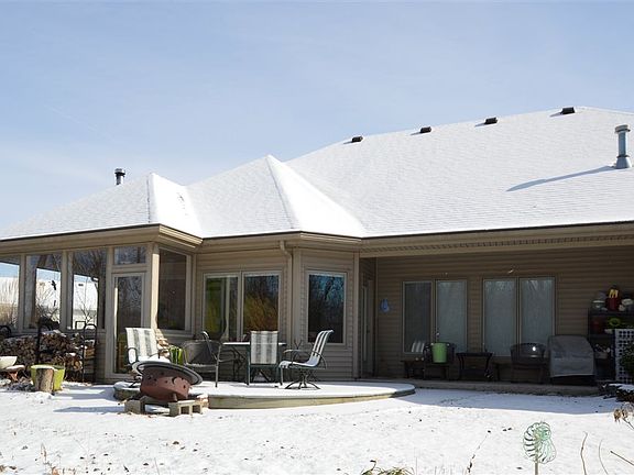 Beautiful ALL BRICK FRONT ranch home with quoined corners and inlayed stone highlights above windows on a private cul-de-sac lot backing up to a small woods behind the picket fence which provides a wall of green all summer long and privacy from walkers on Pufferbelly Trail! Lots of ceramic tile flooring, tall ceilings, oversized crown molding, pocket doors, and transom windows! Six paneled doors with levered handles, laced ceilings, covered front and back porch areas, painted trim and baseboards, lots of fluted trim and columns around dining room! HUGE GREAT ROOM with two really cool arched entries, corner gas log fireplace, 11 foot ceiling and built-in bookshelves! Kitchen features raised panel cabinets with dove tailed drawers, plant/plate shelving above, breakfast bar, subway tile backsplash, Bosch dishwasher, and newer smooth top stove and fridge! Home also features den off foyer with bookshelves, dining room off foyer with trey ceiling, HUGE MASTER BEDROOM with large walk-in closet, bay window and door to covered back porch area! Two other bedrooms (one with walk-in closet), and a hall bath that features a walk-in jetted tub! Nice screened in porch with cozy wood burning stove heater, big three car garage, dimensional shingles, split rail wood fence, and a whole bunch more! You just gotta check it out!!