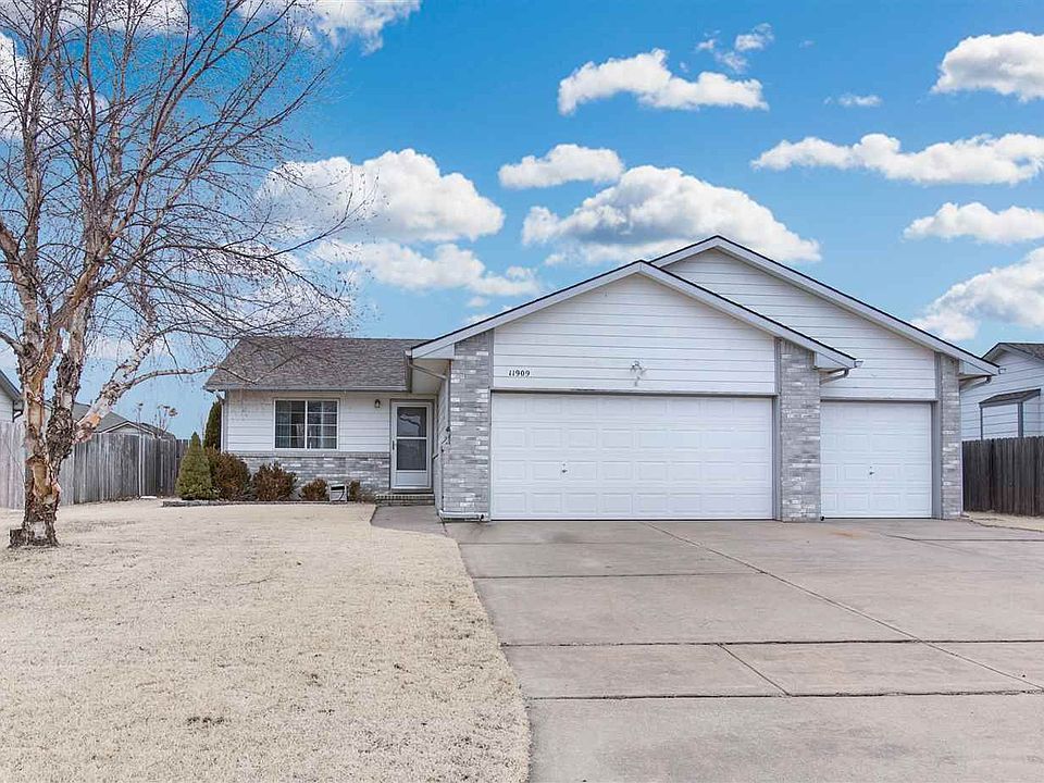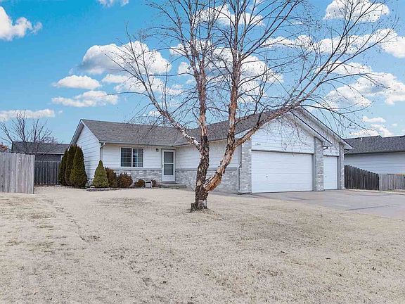 Great starter home located in West Ridge Addition, Maize Schools, and NO specials! This home sits on a cul de sac lot with a fenced yard. Oversized three car garage is sheetrocked, painted, insulated, has an insulated garage door, built in cabinets, epoxy coat on the floor, and garage heater. Open living room with vaulted ceiling. Wood laminate flooring in the kitchen, dining room, and entryway. Kitchen has stainless steel appliances and includes a built in microwave. Master bedroom has two closets. Basement bathroom has solid surface countertops. Basement family room & game room are framed and electrical is run, just need to finish it out with sheetrock, paint, and trim. This won't last so schedule your showing today!!!