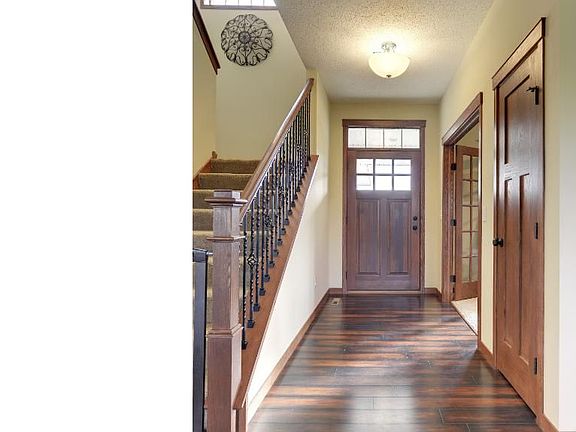 Lovely two story situated on a quiet dead-end street with equine pastures directly behind and open farm field to the north. Open and welcoming floor plan perfect for entertaining. Spacious kitchen with custom cabinets, large island and walk-in pantry. Dining area overlooks private backyard. Main floor den/office. Huge mudroom off garage. Upper level laundry room. Master with walk-in closet and private bathroom. Irrigation system and cozy front porch.