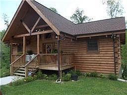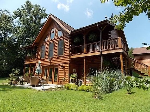 Private Setting!! Custom Log home with the feel of Gatlinburg. Vaulted ceilings, Hardwood floors, Full finished basement, separate oversized 2 car garage and several outdoor sitting areas. A real Must See!!