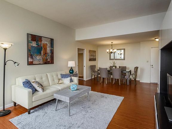 Beautiful sunny & bright 3BR Marina Point condo with high ceilings & great layout: view from all windows; two spacious separate & private master suites w/ large walk-in closets; eat-in kitchen; in-unit laundry room w/cabinets. Meticulous modern remodeling: gorgeous engineered hardwood floor; kitchen & bathrooms w/granite countertops; glossy built-in wall cabinets in living Rm. 2 Deeded parking spaces & extra storage. Next to bay trail & short walk to shopping malls including Ranch 99. Easy access to HWY 101&92..