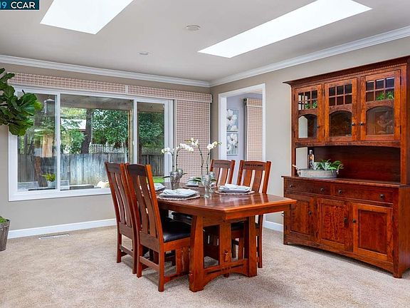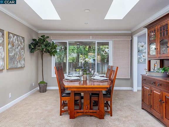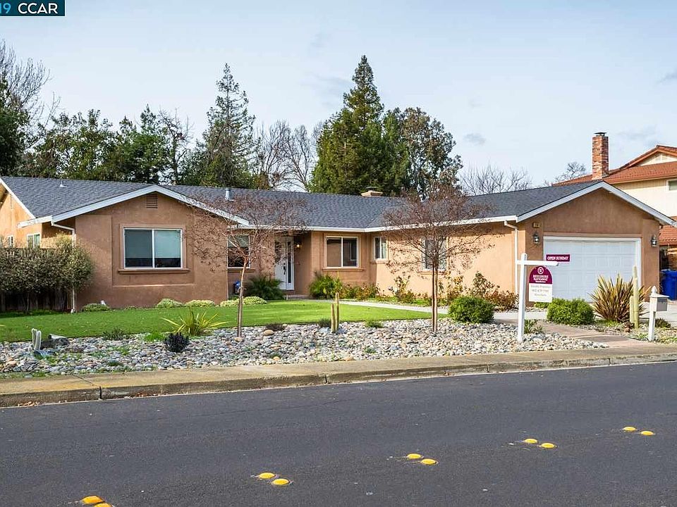 Fabulous location! A contemporary, updated single-story home in lovely Cowell St neighborhood. Situated on a prime flat 1/3 acre, with drought-resistant landscaping and large lawn; open floor plan highlights upscale finishes. Remodeled Chefâs eat-in kitchen with huge slab granite island, bar lighting and stools, stainless steel appliances, gas range, ample cherry wood cabinetry; cozy family/great room with gas fireplace. Entertain friends and family in the formal dining room or in the spacious backyard where barbecues and peaceful lounging await, amid mature trees, flanked by 2 ample side yards. Enjoy lots of natural light from dual-paned windows, sliders and skylights throughout. Interior access to 2-car garage, large laundry room and pantry. Spacious master bedroom suite with tiled bathroom floor, step-in shower, and 3 well-appointed guest rooms, in a level, no- stairs layout. Wonderful neighborhood near Concord Community Center and Pool, BART, schools and shopping! Open Sun 1-4