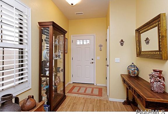 Excellent value in highly sought after "Gardens" gated/senior community in Prescott! Features 3/bed/2bath/2gar, Open/Bright floor plan, Gas Fireplace,Oak Cabinetry w/pullouts, Island, Plantation Shutters, Solar tubes, front & rear Security Screen Doors, Sun Screens, Ceiling Fans, SouthWest Paint Decor & has 12" tile/Woodlike Vinyl flooring. Has spacious Master w/Walk~In Closet, Separate Tub/Shower, & Executive Height Ctr Tops. Low Maintenance Landscaping, Privacy Fenced, & Flat/Level Drive!!