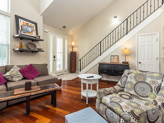 Nice quiet location on the Island. Open floorplan with natural light & vaulted ceilings. The primary bedroom is down with two bedrooms up. Enjoy the open kitchen with stainless appliances, granite and tile backsplash. Hardwood floors up and down. Built-in bookcase above the fireplace. Adorable brick front porch to sit and drink coffee and read a book. Lowest price in the neighborhood! You don't want to miss this one. Open house Saturday, Oct 1st, 11am to 1pm and open Sunday, Oct 2nd 1pm to 3pm.