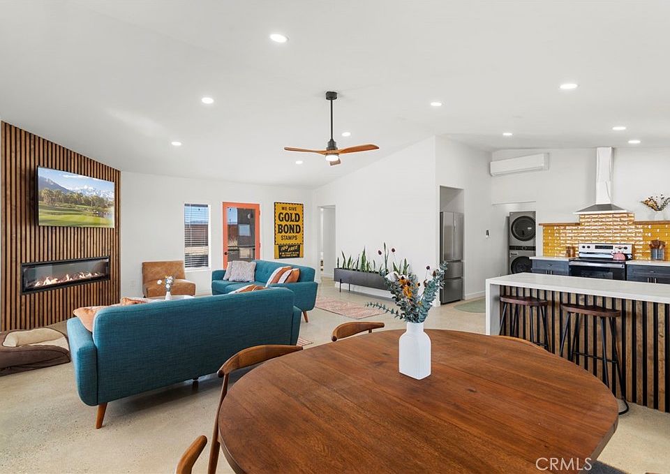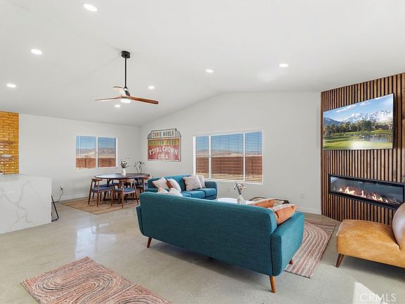 BOTH homes on the property are permitted by the county of San Bernardino for two separate Short Term rentals (airbnb). Brand new roof covering both homes and patio! Newly installed $23k corrugated corten steel fencing around the perimeter of the homes for a stylish, secure and private environment for families, guests and pets! Both homes have brand new heating and a/c that blow frosty cold air! New recessed lighting throughout and ceiling fans in every room. The larger house features polished concrete floors for a raw yet refined finish. Full kitchen remodel (2023) with new countertops, kitchen cabinets, sink, stove and dishwasher. The kitchen and bathrooms all feature intricate, hand cut tiles from Spain. The bathrooms have been FULLY remodeled with brand new bathtubs, fixtures, glass shower doors and light up vanity mirrors. The chevron pattern tile work in the master bathroom is unparalleled craftsmanship and a guaranteed showstopper. The living room features an electric fireplace with light features inlaid into the wood slat tv feature wall.