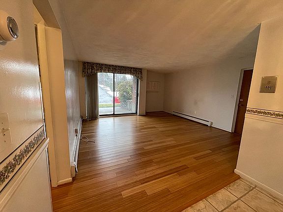 Here's your chance to get into Waltham at an affordable price! This 5 room, 2 bedroom unit has a large master bedroom and updated kitchen and bathroom. The generous living room has a large slider leading to your private patio. Heat and Hot Water are included in the condo fee! This is a prime commuter location is right on the bus line and close to all major highways. Market Basket is right around the corner, along with many restaurants and shops
