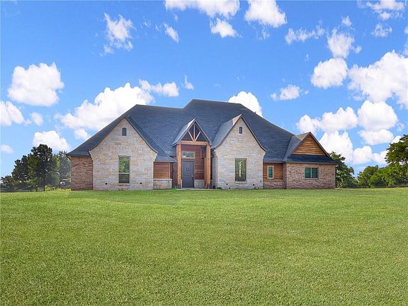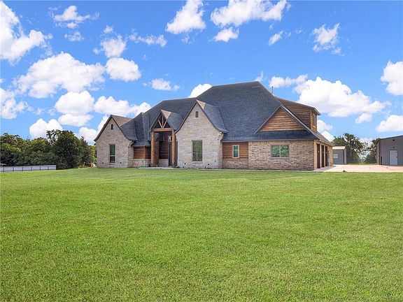 Looking for a CUSTOM home w/o the hassle of building one? This true 4 bedroom w/office, immaculate beauty w/stone & cedar accents on 10 acres has everything you need! Located inside town, but just out of city limits has 2 large shops w/HVAC so possibilities are endless. Spacious open concept living w/large windows allow natural light throughout. The stunning eat-in kitchen w/under counter lighting, soft close custom cabinets to ceiling, walk-in pantry features top of the line commercial stainless steel appliances including a separate ice maker so you will never run out when hosting family & friends. Primary bedroom suite located off kitchen has dual vanities, jetted tub, walk-in shower, & closet bigger than some bedrooms w/entry straight into laundry room for convenience. Upstairs features open space great room w/half bath. Step outside to the covered patio w/fireplace to enjoy a dip in in the pool. Hardwired for generator. This is what you're looking for, tranquillity at it's finest!